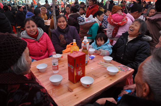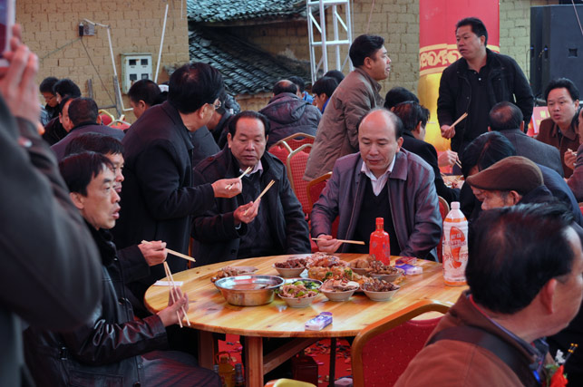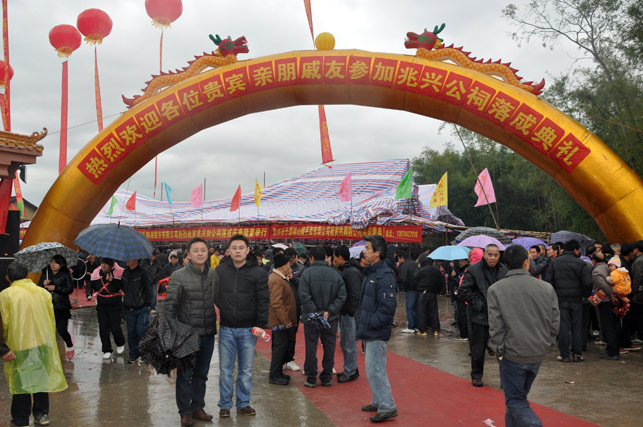 12月的27、28日,天公似乎不是很作美,寒风凛冽,风雨交加,我和公司的督导部玉广文经理、销管部的吴远东、贺州办事处陈晖经理以及贺州办事处的同事一起把酒送到了活动举办地,并把横幅及宣传物料在现场精心的布置了整整两天。29日,我们一行8人一大早一道参加了贺州市客家文化联谊会暨兆兴公祠落成典礼的宏大场面,现场气氛一浪高过一浪,人潮鼎沸,人们载歌载舞,红色瓶子的五粮醇在会场格外的引人入目,五粮醇香气四溢,空气中充满了五粮醇的味道,是的,空气中都充满了五粮醇的味道,为啥?因为在会场都是用大碗喝酒的,同一时间里600多桌的五粮醇都打开了,倒进大碗里,人们大碗喝酒,大口吃肉,一起欢庆这个美好的时刻。午餐过后,还有精彩的文艺演出,一直到傍晚,中午的酒香还没飘散,晚餐又来了,又是600多桌五粮醇宴席同时开启,这一刻,仿佛走进了五粮醇的世界,人们都沉浸在五粮醇的酒香当中,陶醉不已。据活动后的不完成统计宴席的桌数已经超过了1500桌,参加盛宴的人数超过2万人次,这应该是贺州市成立以来的规模最大的、人数最多的一次盛宴。